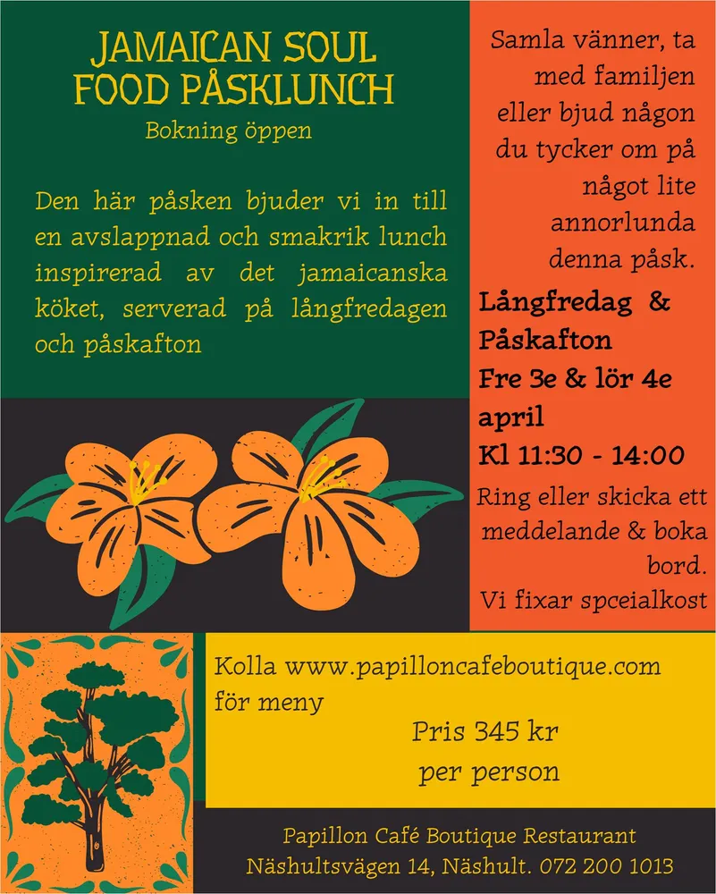 I påsk bjuder vi in dig till en avslappnad och god lunch inspirerad av jamaicansk mat, serverad på långfredagen och påskafton, 11:30-14:00.